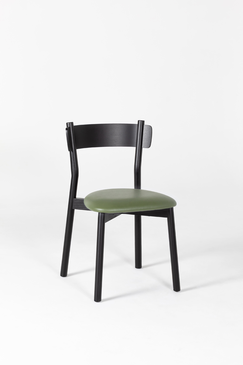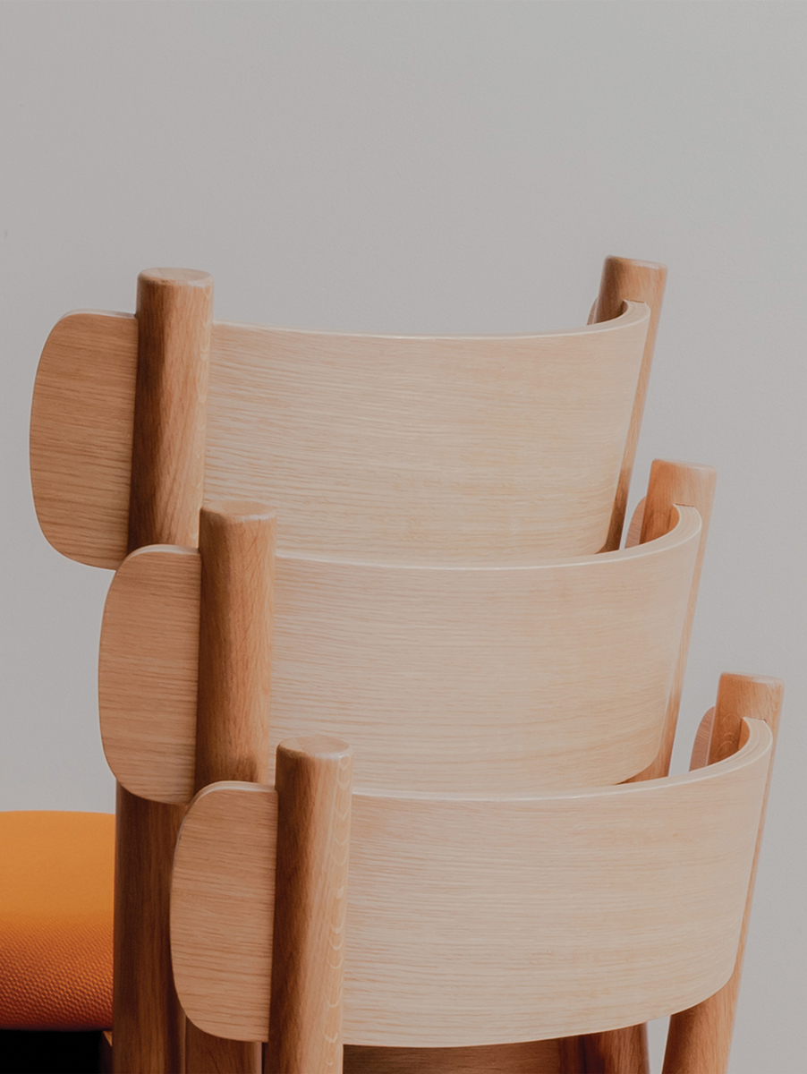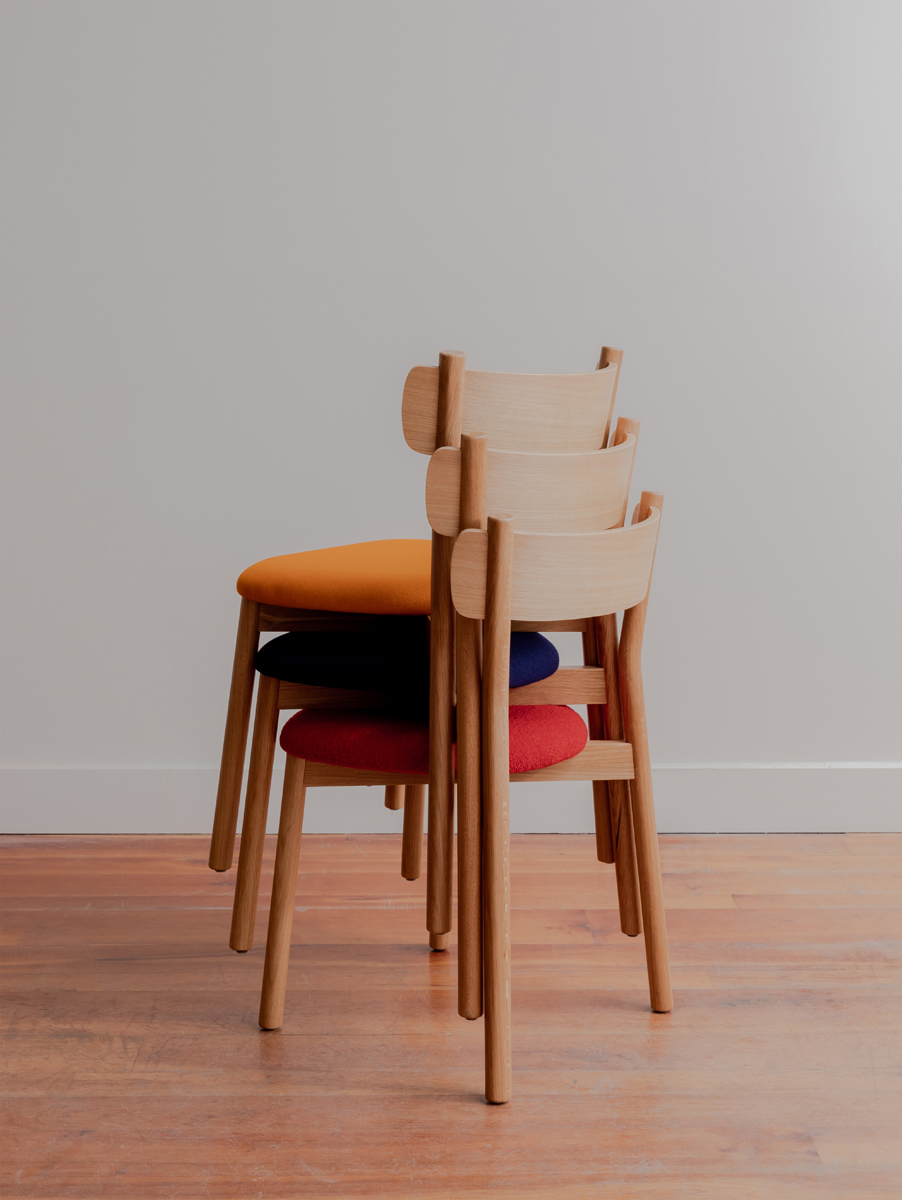 Charlie is a chair that stacks, defined by a simple silhouette, solid timber construction and a gently curved plywood backrest. Designed by James Walsh, Charlie is available in a range of timber finishes with the option of upholstered seat pads in fabric or leather.