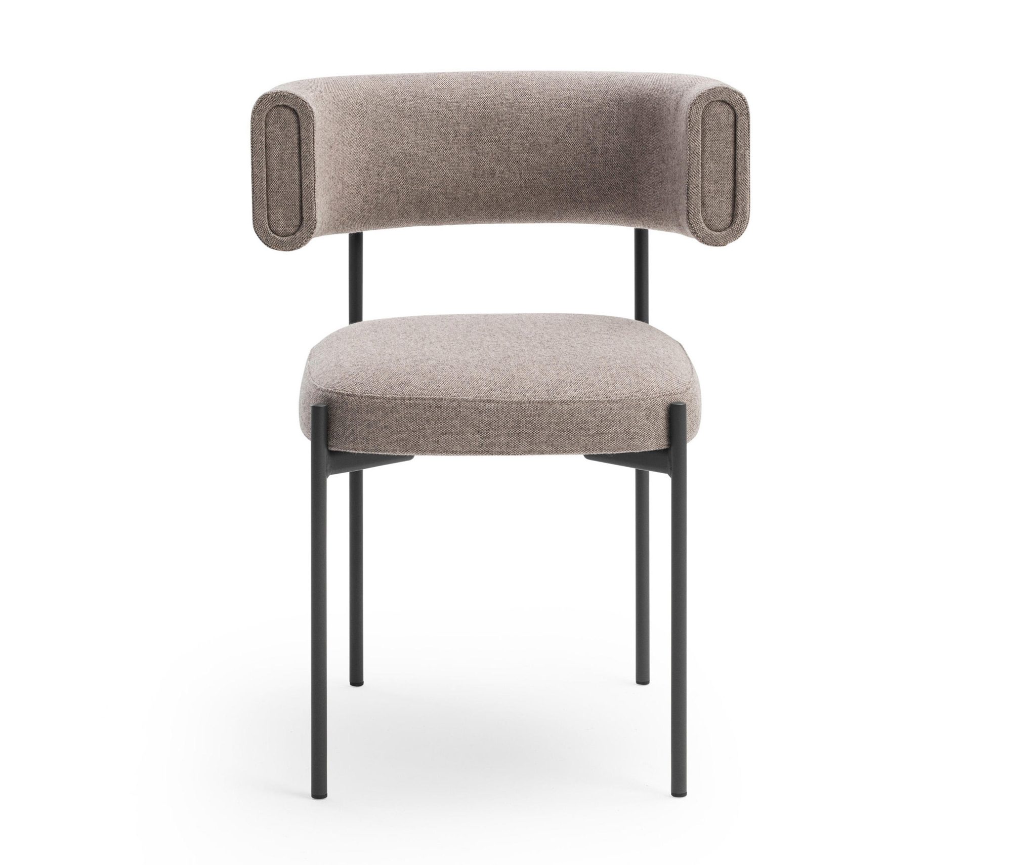 Amelie exemplifies sophistication, characterised by its foundational four-leg metal base. Featuring a meticulously upholstered backrest and seat, providing a luxurious choice between leather or fabric coverings.